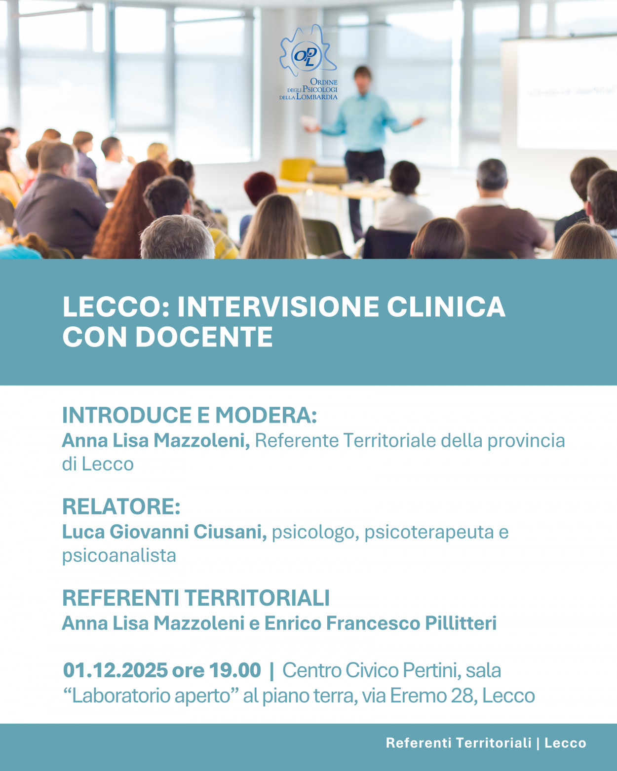 Evento aperto agli iscritti dell'OPL e agli studenti di psicologia della provincia di Lecco.