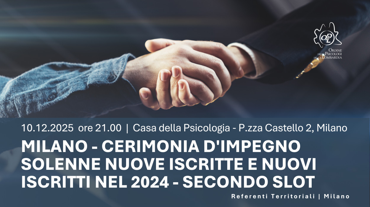 L’evento è dedicato a tutte le colleghe e i colleghi, residenti a Milano, che si sono iscritti all’Albo 2024 vuole essere un momento altamente simbolico per sancire l’appartenenza alla comunità professionale.