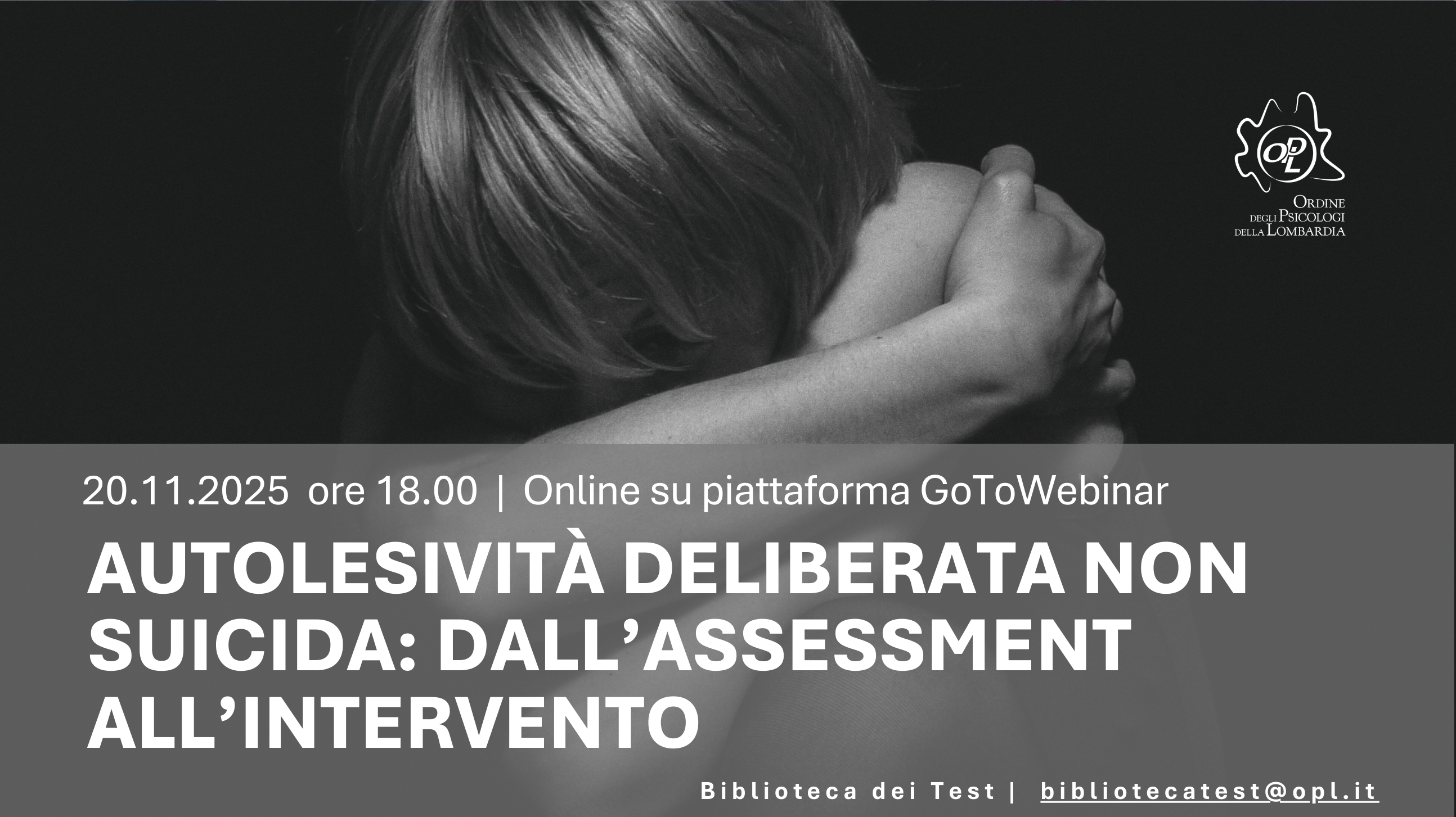 Con il termine autolesività deliberata non suicida (NSSI) ci si riferisce al danneggiamento deliberato e diretto di tessuti corporei senza intento suicida. La prevalenza del NSSI nel ciclo di vita è elevata sia nei campioni di adolescenti, sia nei campioni di adulti. Inoltre, il NSSI si associa a un benessere psicosociale minore e a un maggior tasso di psicopatologa, rappresentando un importante problema di salute pubblica. Diversi studi empirici hanno mostrato come il NSSI sia connesso a un’ampia gamma di manifestazioni psicopatologiche, che comprendono i disturbi alimentari, i disturbi dello spettro psicotico, i disturbi da uso di sostanze e i disturbi di personalità (in particolare, il disturbo borderline di personalità). Esiste un’ampia gamma di misure per la valutazione del NSSI; tra queste, il Functional Assessment of Self-Mutilation (FASM; Lloyd, Kelley, e Hope, 1997) rappresenta uno strumento autosomministrato utile per la valutazione di diverse funzioni assolte dal NSSI (per es., sollievo da emozioni negative, identificazione con i pari, etc.), mentre la Clinician-Administered Nonsuicidal Self-Injury Disorder Index (CANDI; Gratz et al., 2015) si configura come un’intervista per la valutazione dei criteri del disturbo da autolesività non suicidaria del DSM-5. Lo scopo del webinar è quello di introdurre l'utilità della valutazione del NSSI nel contesto clinico, presentando le caratteristiche principali di FASM e CANDI e l’utilità dell’assessment di queste caratteristiche per la pianificazione del trattamento.
