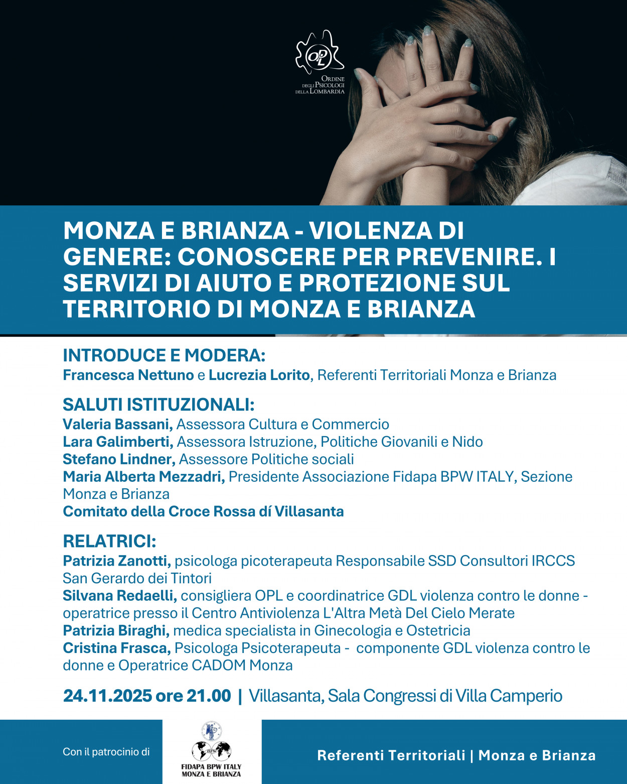 Torna all'elencoMONZA E BRIANZA- Violenza di genere: conoscere per prevenire. I servizi di aiuto e protezione sul territorio di Monza e Brianza